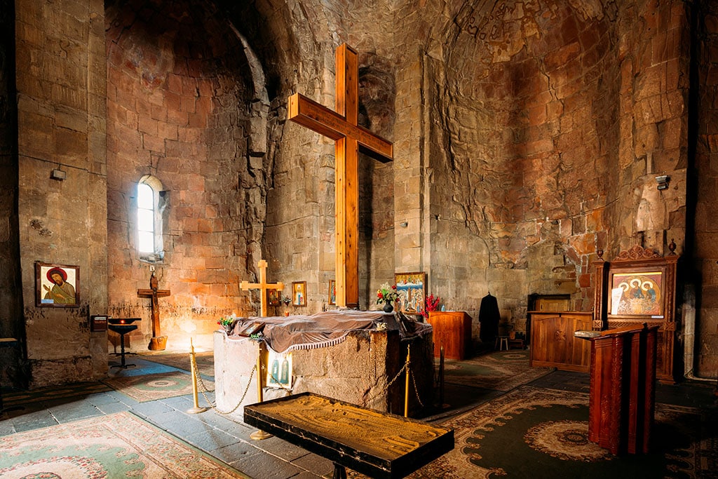 Ми потрапимо до собору Светіцховелі. Дорога проходить через вузькі вулички старої Мцхети, де можна відчути її давній колорит. Светіцховелі – це головний собор Мцхети й усього Грузинського православ’я який по праву називають «серцем віри грузинського народу». Його назва перекладається як «Животворящий стовп». За переказом, саме тут зберігається хітон Ісуса Христа, принесений до Грузії єврейським чоловіком Еліозом після розп’яття Господа. Усередині храму можна побачити: