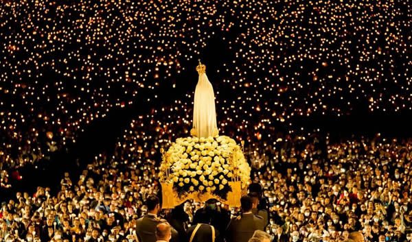 У темряві це виглядає як живий океан вогню. Це ніч, коли земля стає відображенням зоряного неба. Тисячі живих вогників у руках паломників зливаються у золоте море, що повільно коливається у темряві. Повітря наповнюється тихим шепотом молитов на десятках мов, який перетворюється на єдиний гул – голос надії. Коли лунає величне «Аве Марія», тисячі рук водночас піднімають свічки вгору, і площа вибухає сяйвом, ніби пульсуюче серце. В центрі цього світла – білосніжний силует Богородиці, що пливе над натовпом крізь аромат воску та нічну прохолоду.