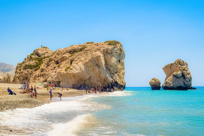 Саме тут, за легендою, богиня кохання вийшла з морської піни. Прозора вода, великі камені і той самий пейзаж, який знають з листівок.